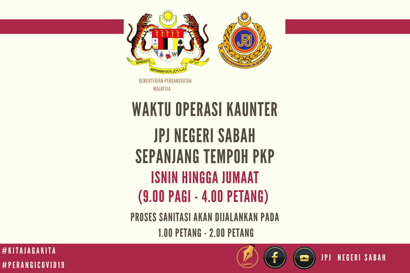 Pusat Maklumat Rakyat Utc Sabah Twitter પર Makluman Waktu Operasi Kaunter Jpj Negeri Sabah Sepanjang Tempoh Pkp Yang Bermula Pada 13 Januari 2021 Hingga 26 Januari 2021 Tidak Termasuk Pejabat Jpj Di
